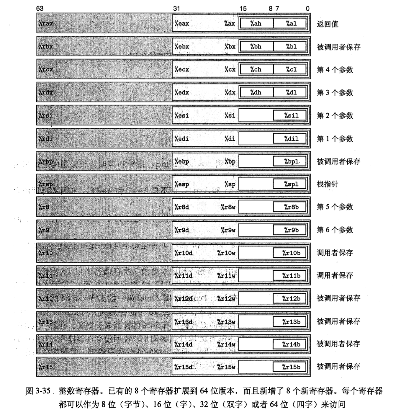 x86-64的CPU包含一组16个存储64位的通用目的寄存器